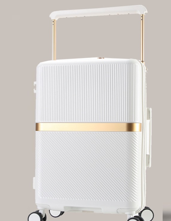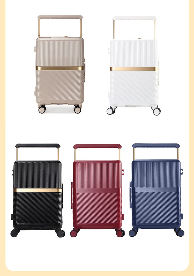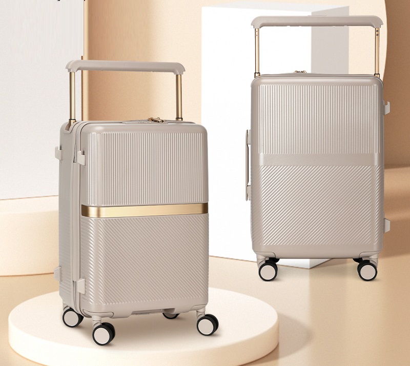 - Bề mặt vân sọc kết hợp đường ngang sáng màu (hoặc điểm nhấn ánh kim) giúp tổng thể chiếc vali vừa sang trọng, vừa khác biệt, không bị trùng lặp với các mẫu phổ thông trên thị trường.