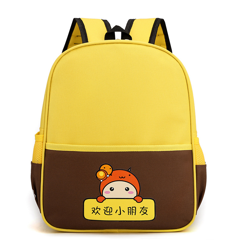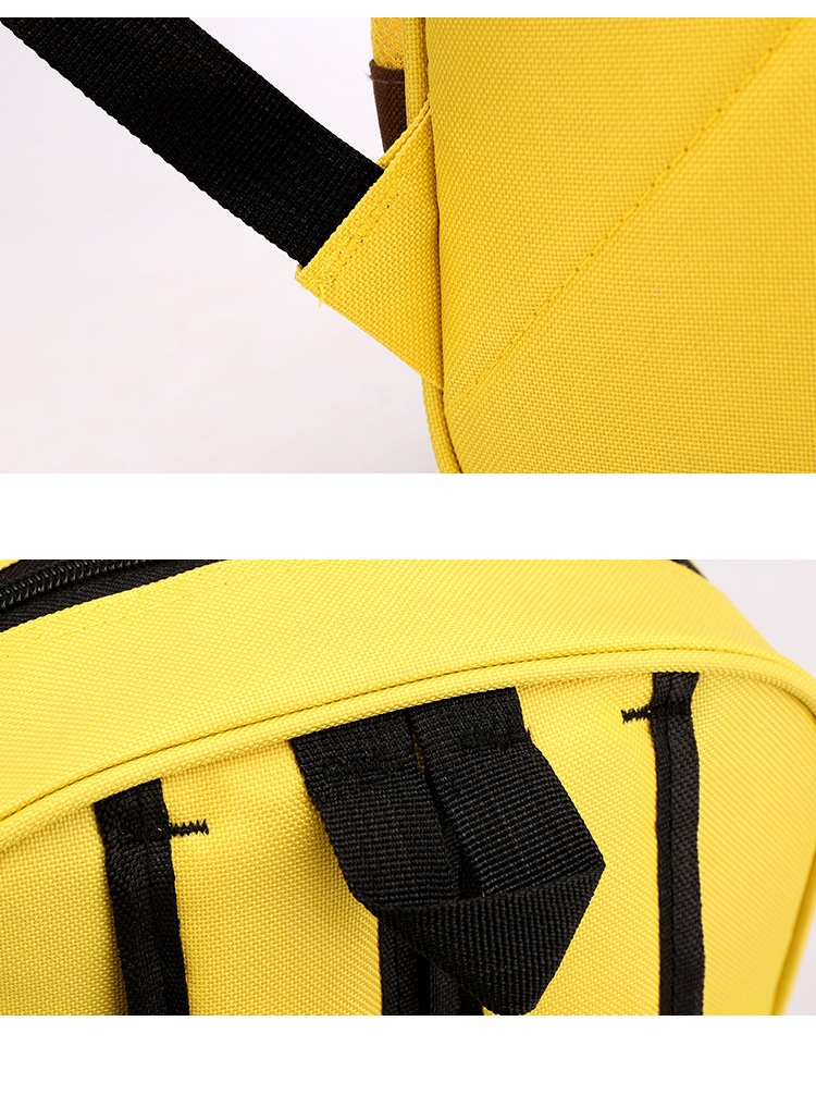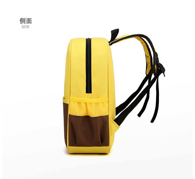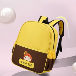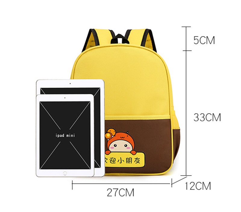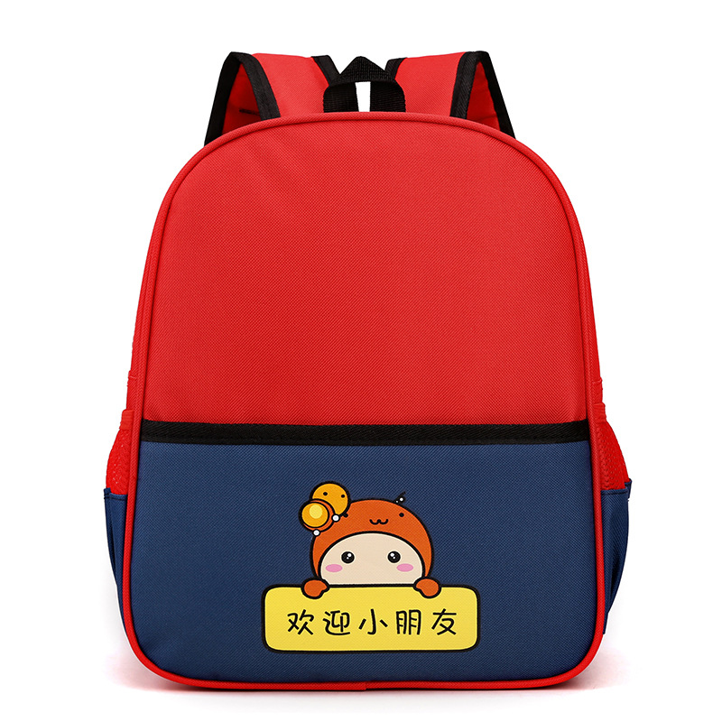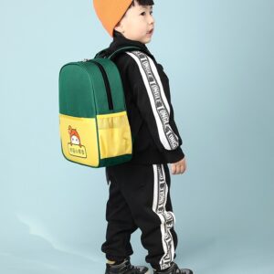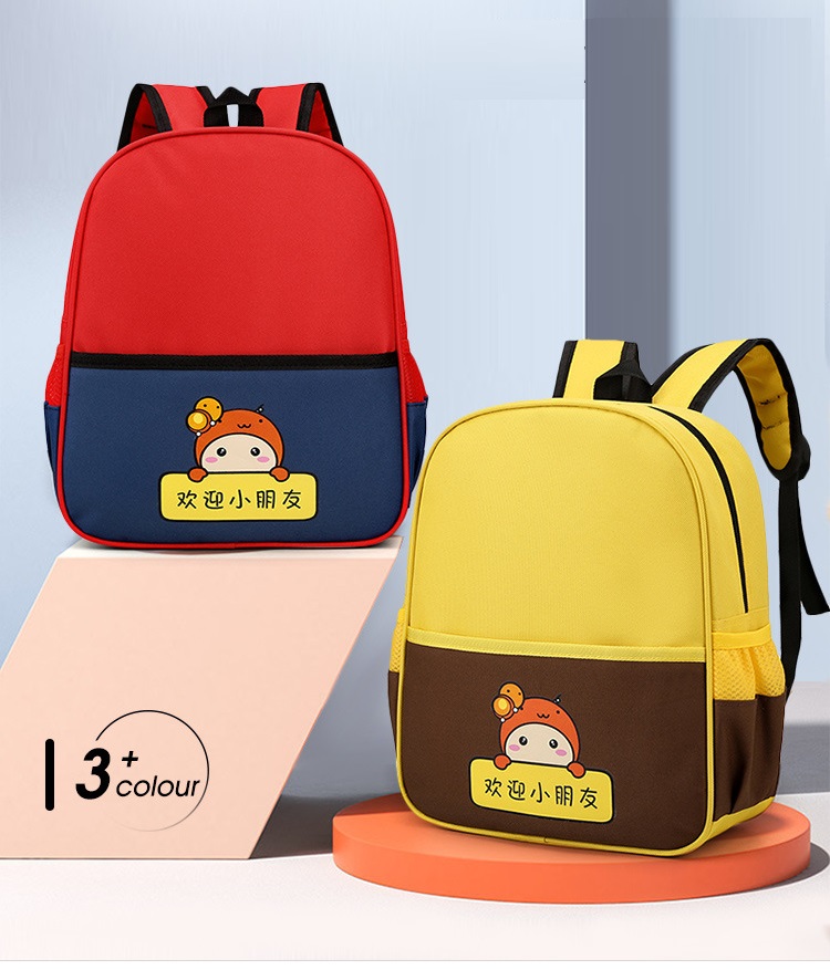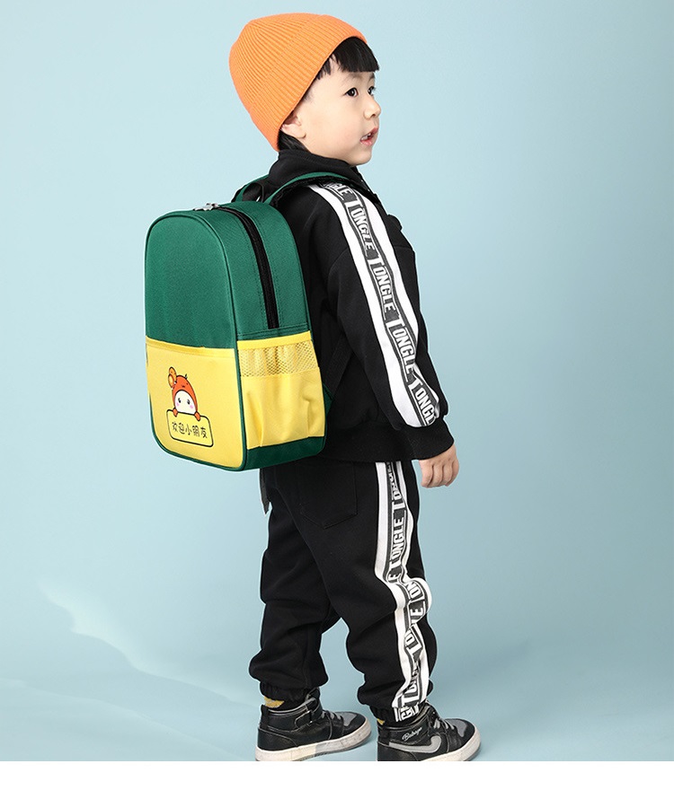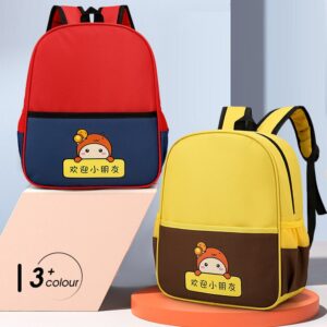Thiết kế tối giản nhưng nổi bật nhờ sự kết hợp tinh tế giữa các tông màu tương phản (Đỏ – Navy, Xanh Lá – Vàng, Vàng – Nâu). Đi cùng đó là hình nhân vật hoạt hình dễ thương tạo cảm giác thân thiện và khiến bé càng thêm thích thú khi mang balo đến trường, đi chơi hay dã ngoại.