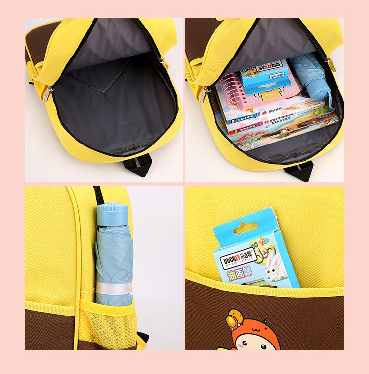 Túi trước hình nhân vật hoạt hình cực đáng yêu, là nơi bé có thể đựng khẩu trang, khăn giấy hoặc đồ lặt vặt.
