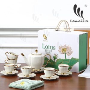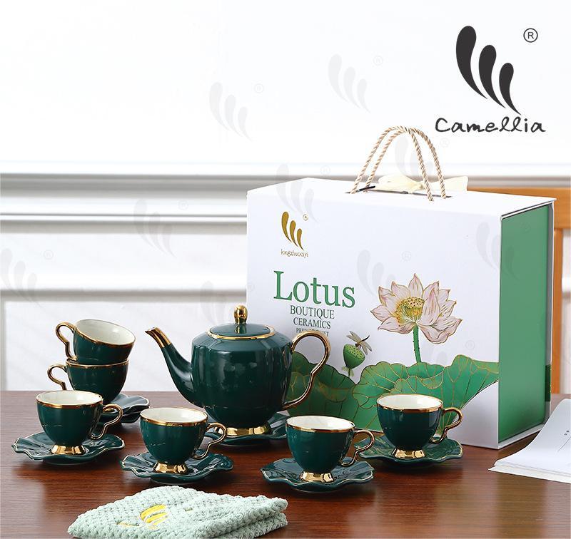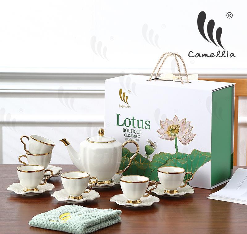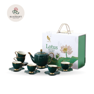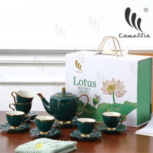 Lấy cảm hứng từ hoa sen – biểu tượng của sự tinh khiết, may mắn và thịnh vượng, bộ ấm chén sứ là món quà tặng mang đậm phong cách truyền thống kết hợp hiện đại.