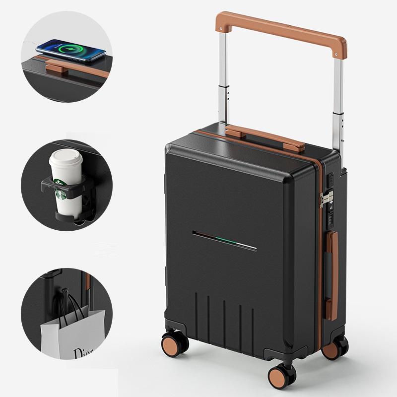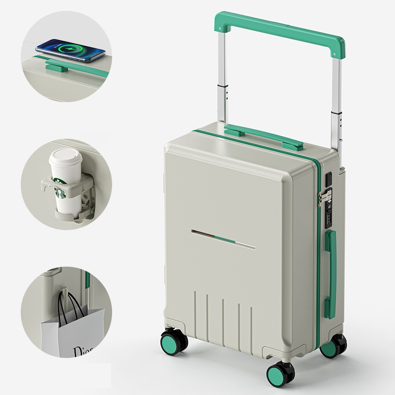 Giá đỡ cốc được ẩn tinh tế ở mặt trước vali.